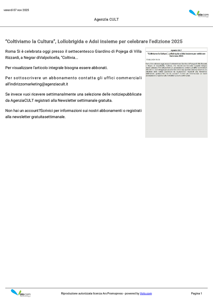 A.D.S.I. e Lollobrigida insieme per celebrare Coltiviamo la cultura 2025